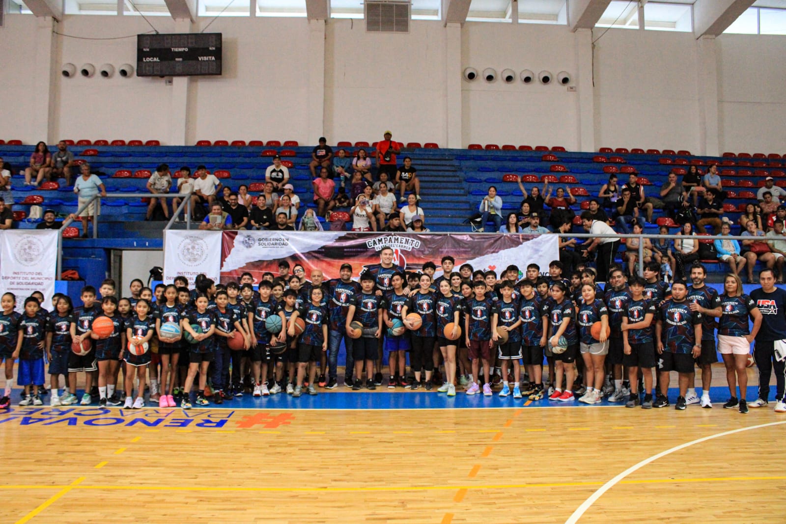 Este viernes 20 de diciembre arrancó el Campamento NBA en el Gimnasio Poliforum con la participación de alrededor de 100 niñas, niños y adolescentes, alumnos de las Academias de Iniciación y Formación Deportiva del Instituto del Deporte, al igual que entrenadores de diferentes clubes y academias que apoyan en los diversos ejercicios.