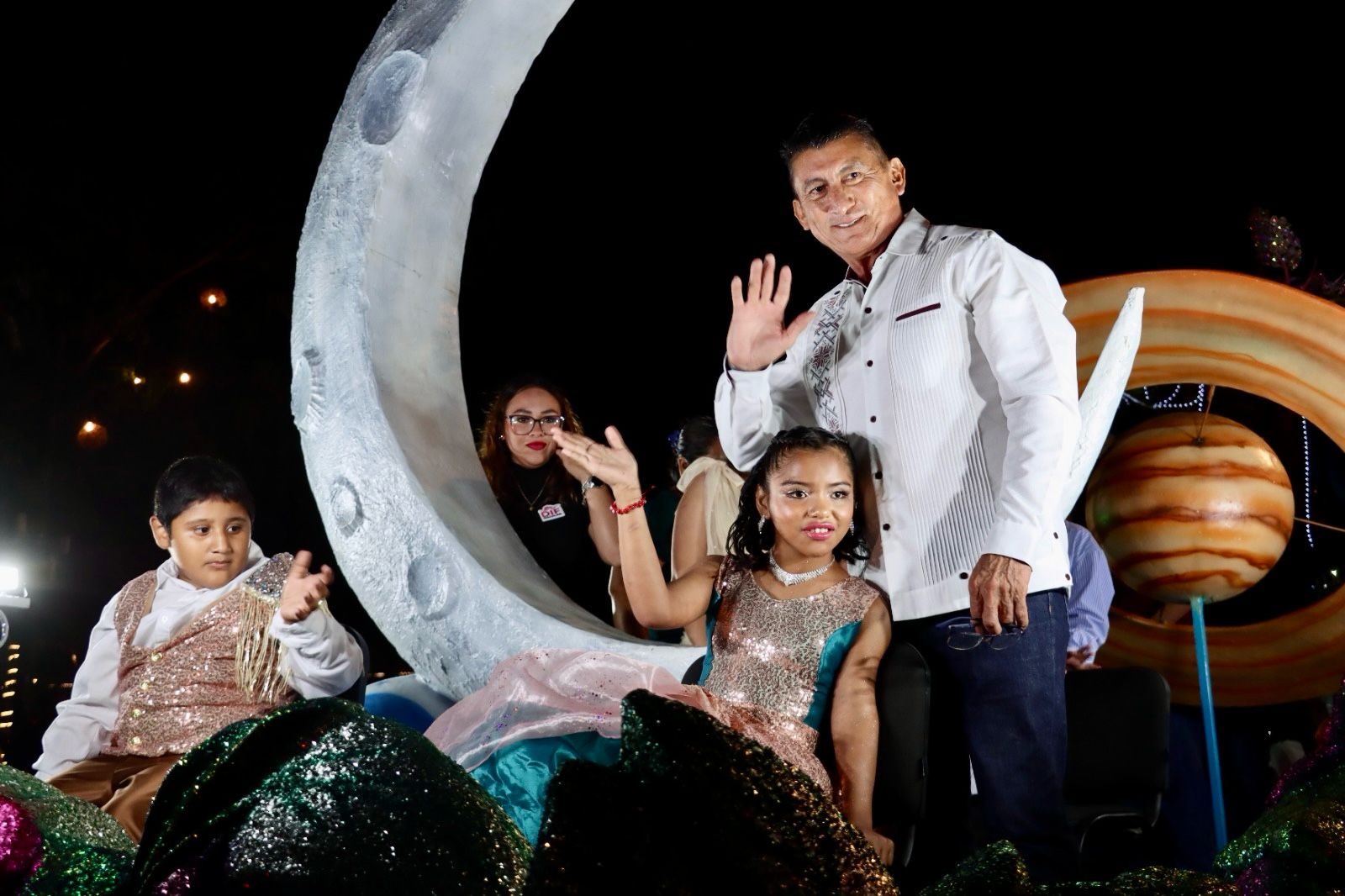 El presidente municipal de Bacalar, José Alfredo “Chepe” Contreras, encabezó la inauguración junto a la diputada local Diana Gutiérrez, distinguidos invitados y el público en general. La “Noche Galáctica” unificó a familias y turistas en el Pueblo Mágico, ofreciendo un espectáculo de coloridos vestuarios y coreografías llenas de energía en el tradicional desfile.