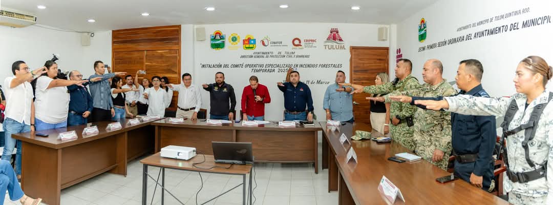 TULUM a 11 de marzo.- Con el objetivo de reforzar las estrategias de prevención y respuesta ante la temporada de incendios, el Ayuntamiento de Tulum instaló el Comité Operativo Especializado en Incendios Forestales 2025. La conformación de este grupo de trabajo se realizó en coordinación con la Comisión Nacional Forestal (Conafor), la Coordinación Estatal de Protección Civil de Quintana Roo y la Dirección General de Protección Civil y Bomberos de Tulum.