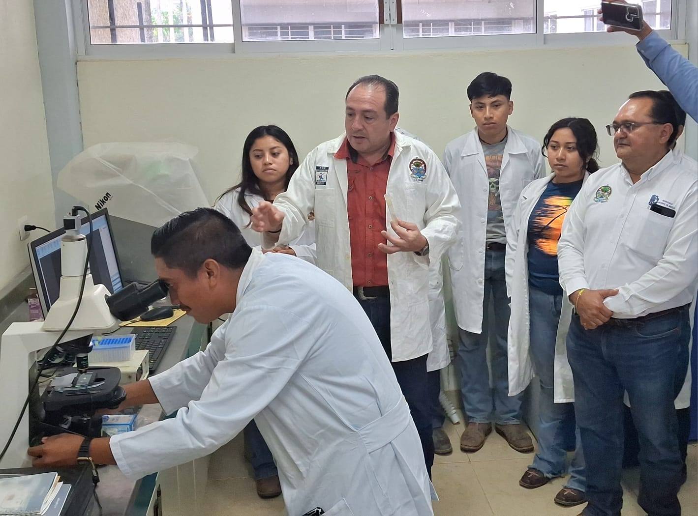 En el laboratorio de reproducción animal, el maestro Valentín Cárdenas Medina explicó que el instituto dispone de tecnología especializada para la evaluación y certificación de fertilidad animal, un servicio que incide de manera directa en la mejora genética y productividad del hato bovino regional.