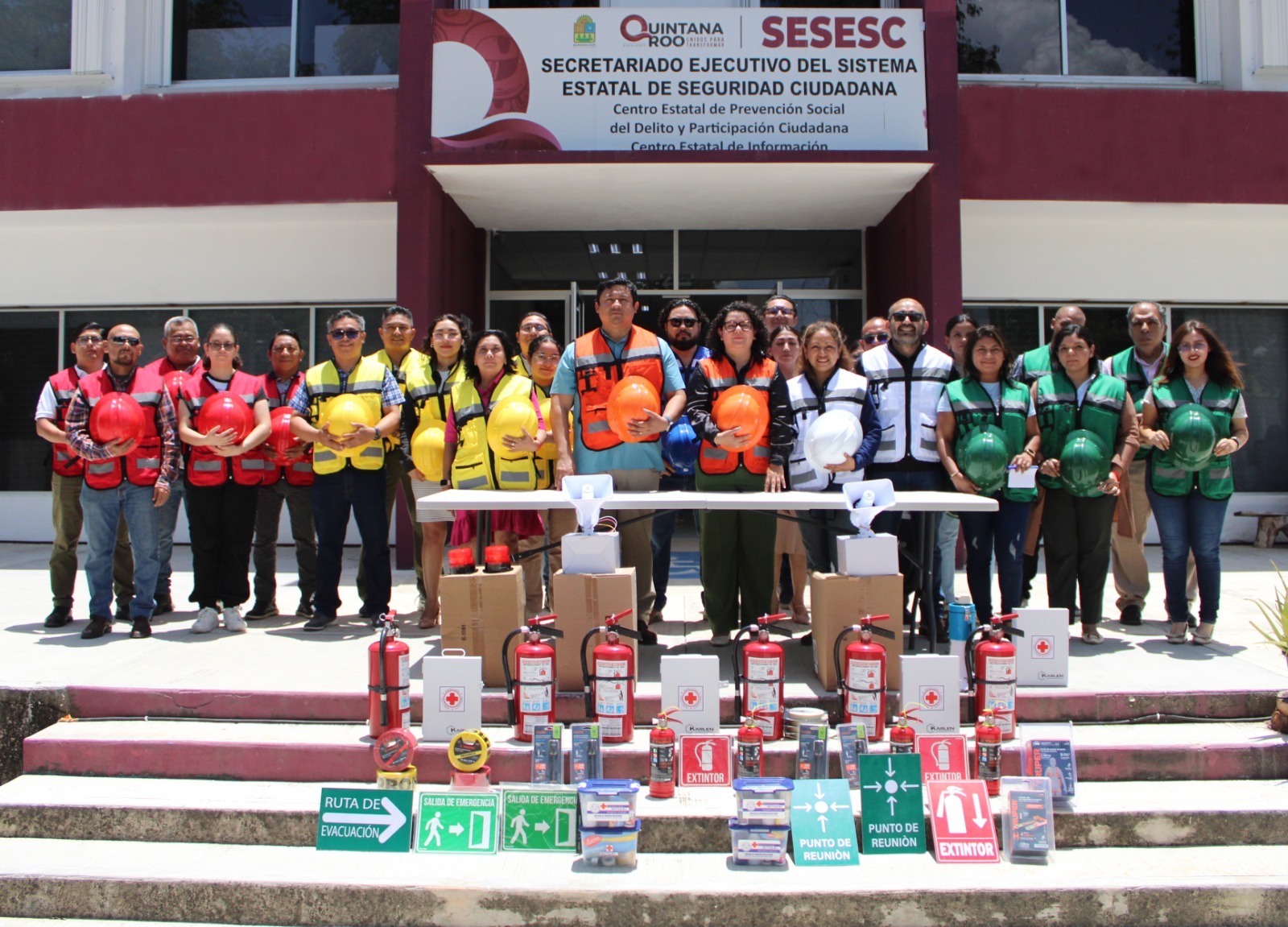 Chetumal.- Con la finalidad de salvaguardar la integridad de las y los trabajadores, así como del personal que visita las instalaciones, el Secretariado Ejecutivo del Sistema Estatal de Seguridad Ciudadana (SESESC), conformó sus Brigadas Internas de Protección Civil, para actuar de forma más rápida y correcta ante una emergencia.