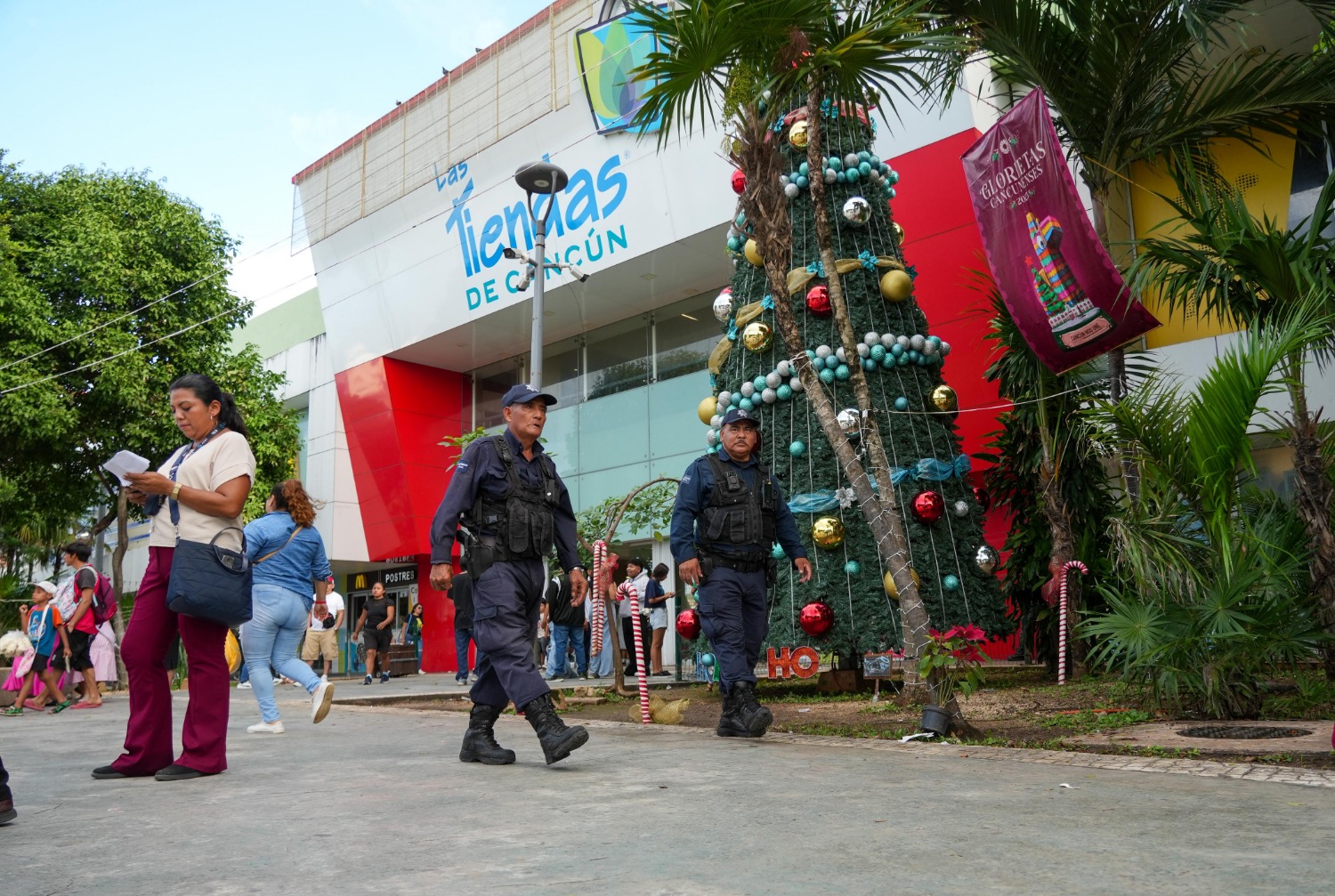 Entre las zonas con vigilancia reforzada se encuentran centros comerciales como Plaza Las Américas, Puerto Cancún, Cancún Mall, Gran Plaza y las diversas sedes de Multiplaza, además de supermercados, áreas bancarias y corredores comerciales estratégicos, donde se busca inhibir cualquier acto ilícito y asistir a la población de manera oportuna.