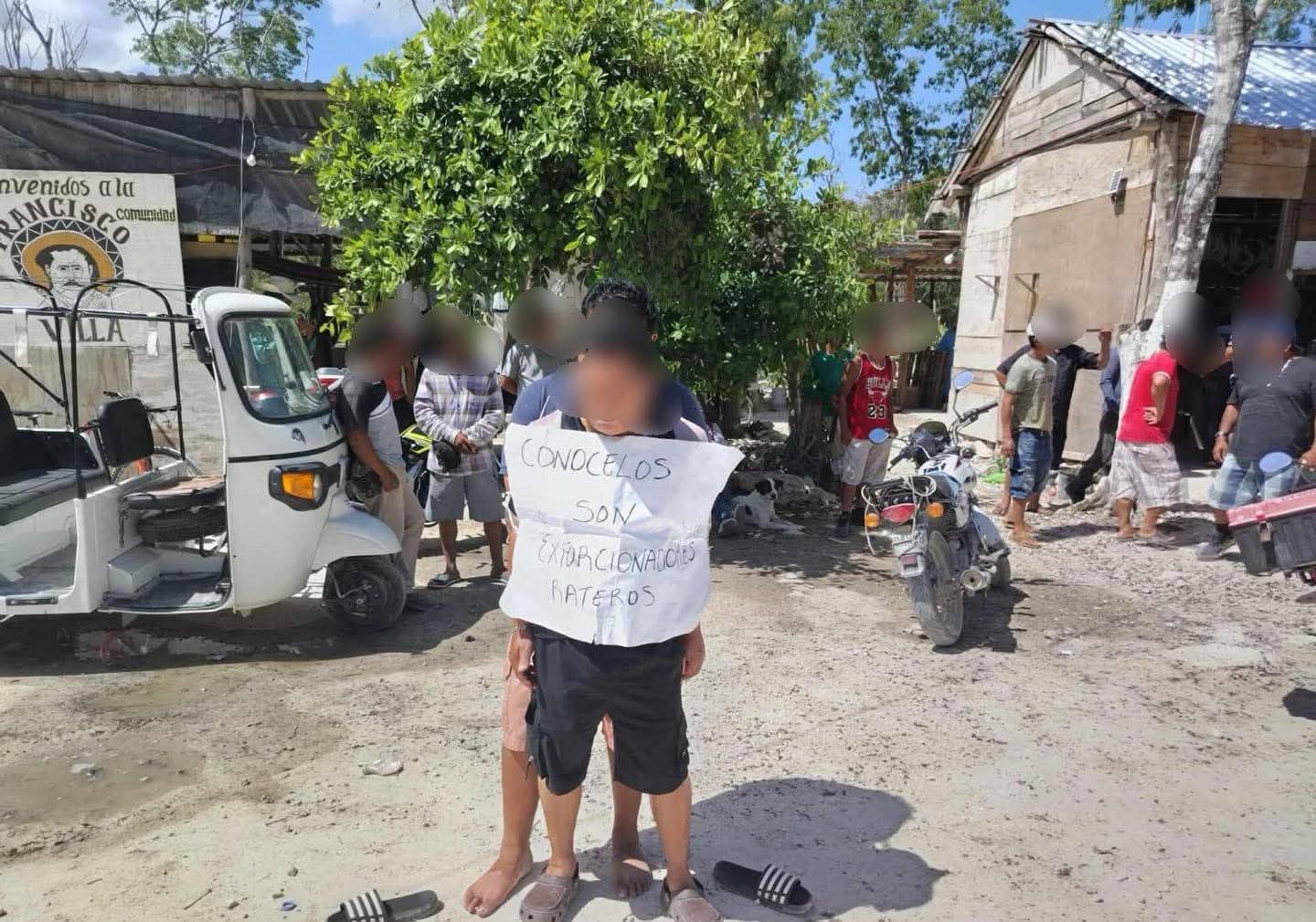 Los presuntos extorsionadores fueron amarrados por los lugareños, quienes posteriormente solicitaron la intervención de la policía.