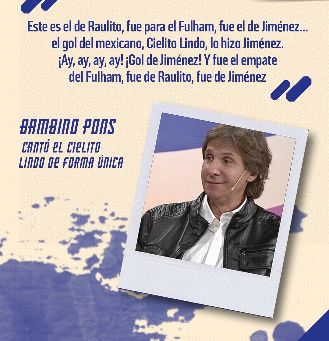 Juan Manuel ‘Bambino’ Pons, de la cadena ESPN, decidió cantar en la transmisión el ‘Cielito Lindo’ con algunas ‘adaptaciones’ para relatar el tanto de Jiménez.