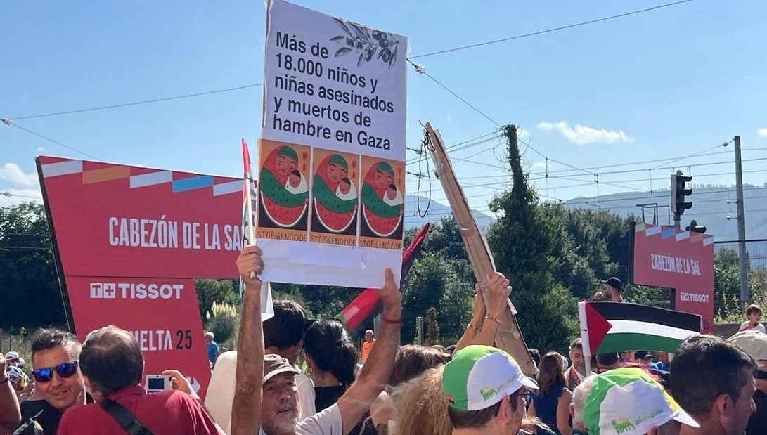 El pasado jueves, 4 de septiembre, alrededor de 300 personas con numerosas banderas palestinas se concentraron desde primera hora en la salida de la Vuelta en Laredo (Cantabria) con pancartas como “Israel genocida” o “Stop genocidio”, si bien no alteraron en ningún momento el curso de la etapa. Y, finalmente, la breve interrupción de la etapa del Angliru, el mítico puerto ciclista de Asturias.