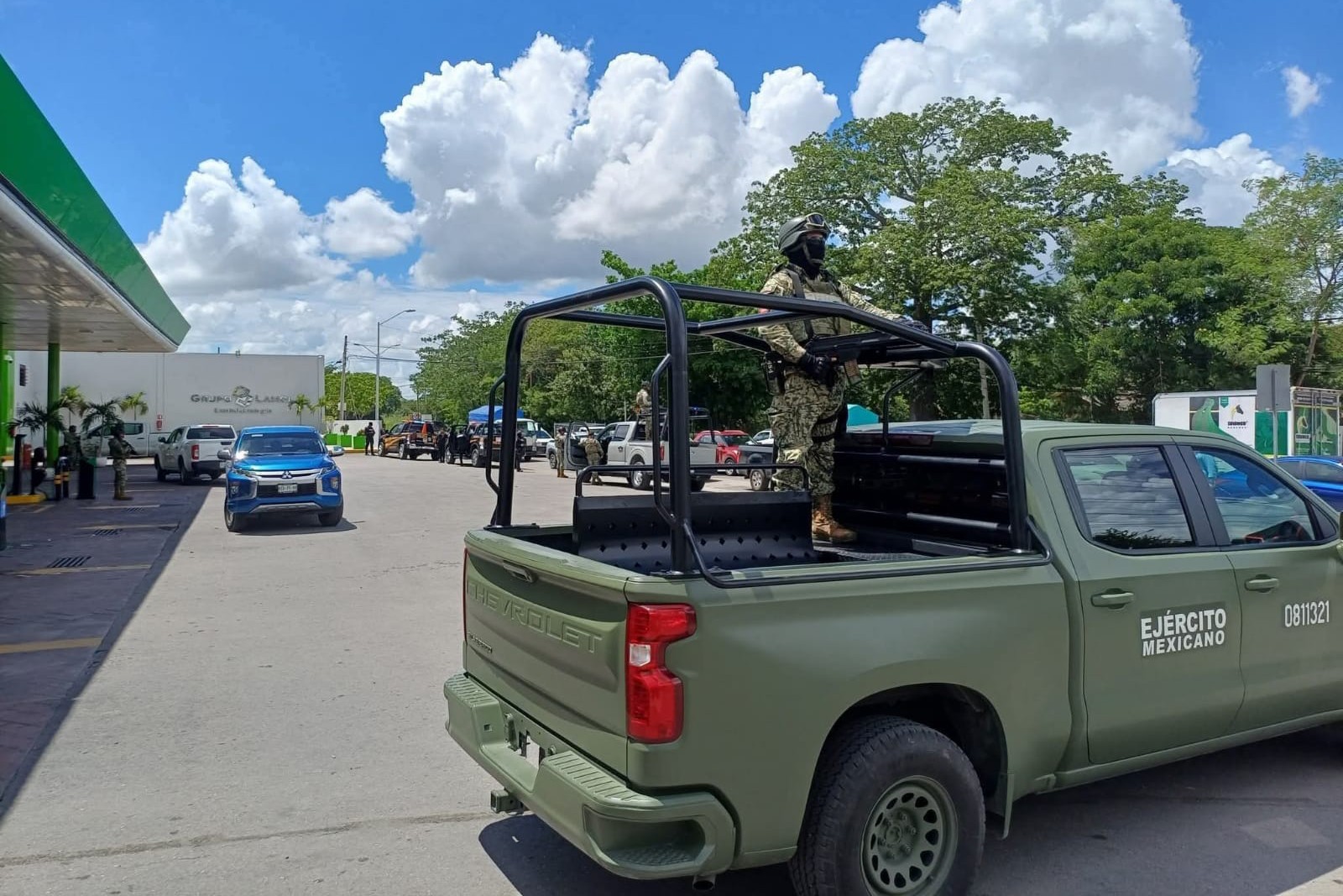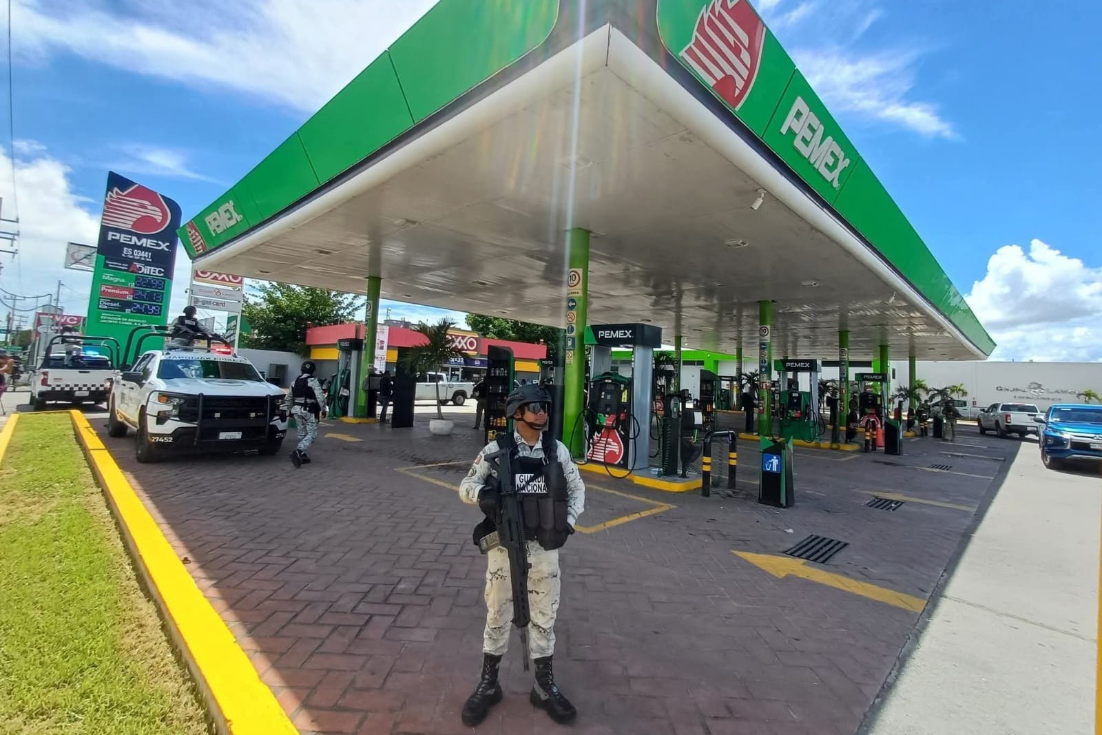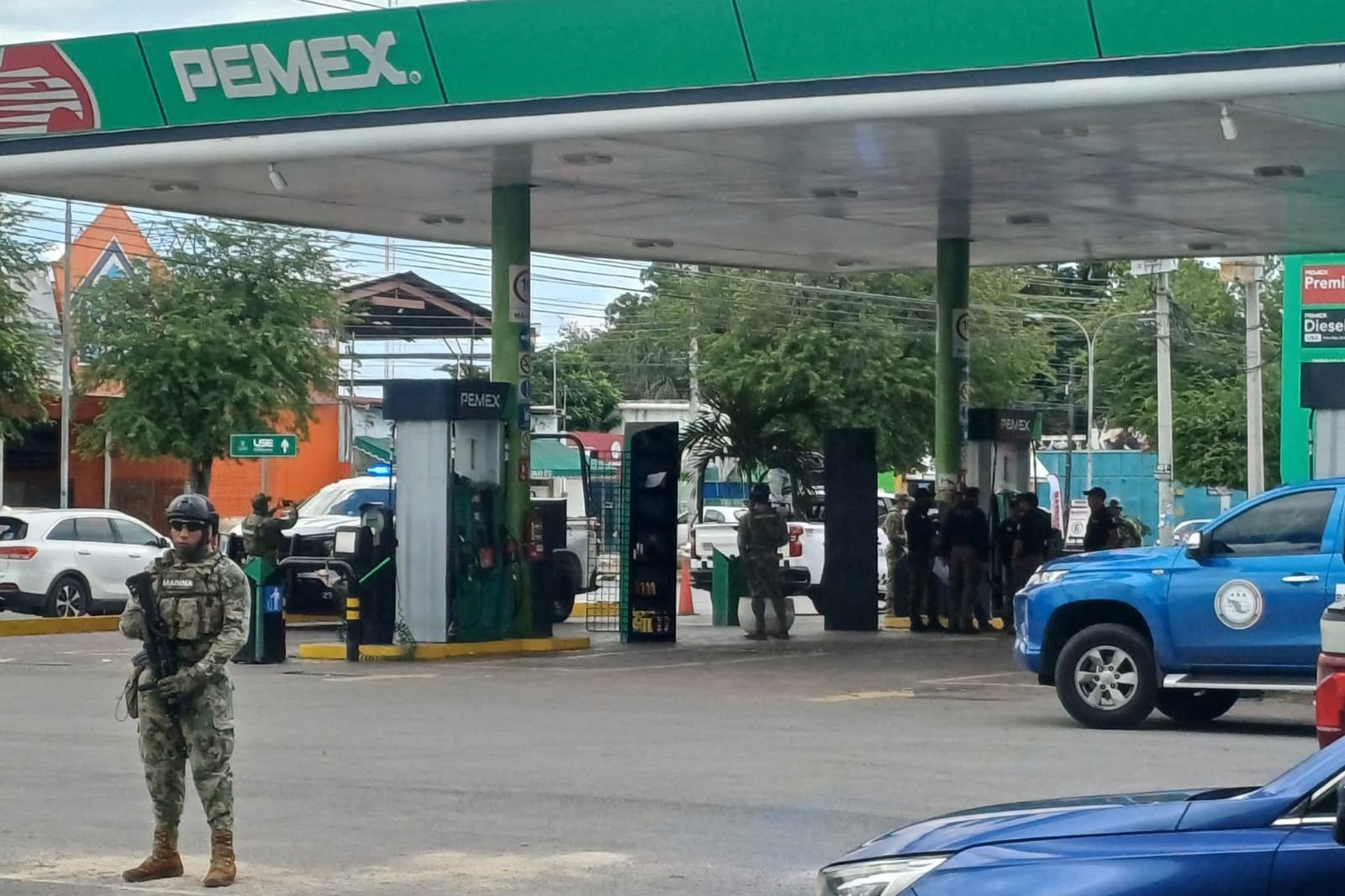 MÉRIDA, YUC. a 23 de septiembre.- Intenso operativo de fuerzas federales y estatales sorprendió este martes a clientes y transeúntes en una gasolinera ubicada sobre la avenida Jacinto Canek, esquina con la calle 132, frente al corralón de la Secretaría de Seguridad Pública.