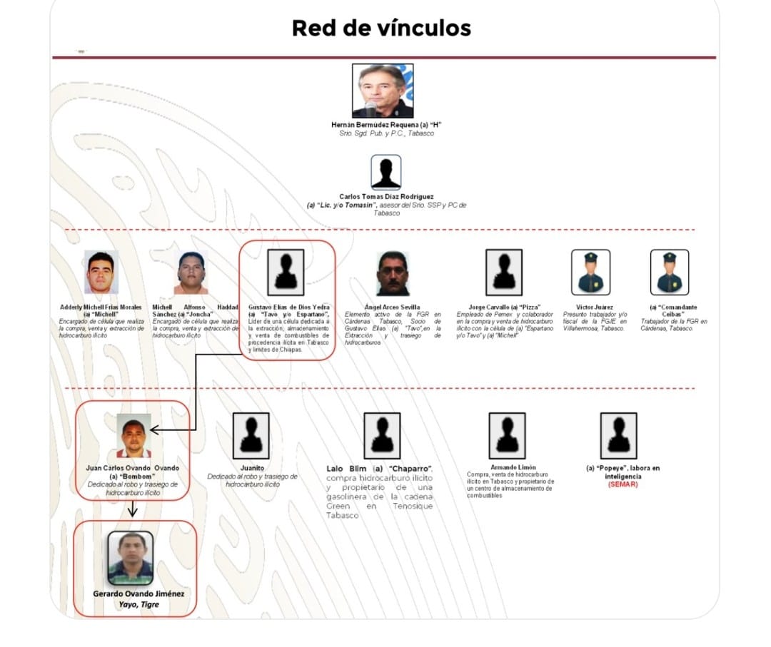 Documentos de inteligencia militar consultados por MCCI mencionan a ex funcionario tabasqueño en la red de vínculos con grupo criminal que pretendía extraer 38 millones de litros de combustible del puerto de Dos Bocas; es buscado por la Interpol, acusado de proteger al grupo “La Barredora