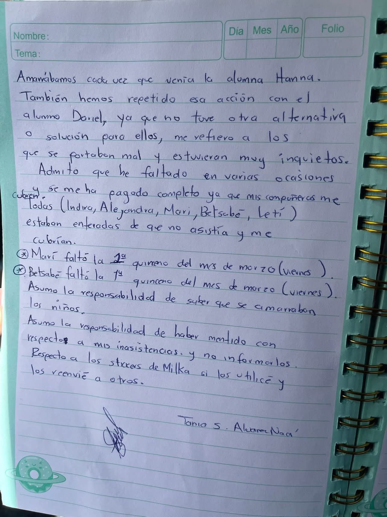“La primera vez que se hizo la clase muestra de la menor (…) la maestra Betsabé la amarró en una silla, me jalaba el pantalón para pedir ayuda mientras lloraba”, detalla uno de los escritos.