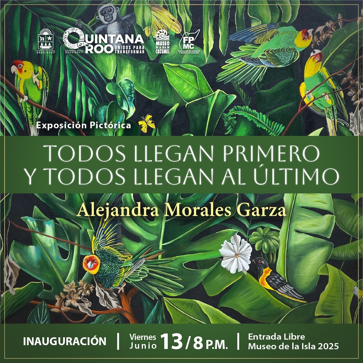 Cozumel.- La Fundación de Parques y Museos de Cozumel (FPMC) invita a la comunidad a la inauguración de la exposición pictórica “Todos llegan primero y todos llegan al último”, de la artista Alejandra Morales Garza, el próximo viernes 13 de junio, a las 20:00 horas, en el Museo de la Isla. La entrada será libre.