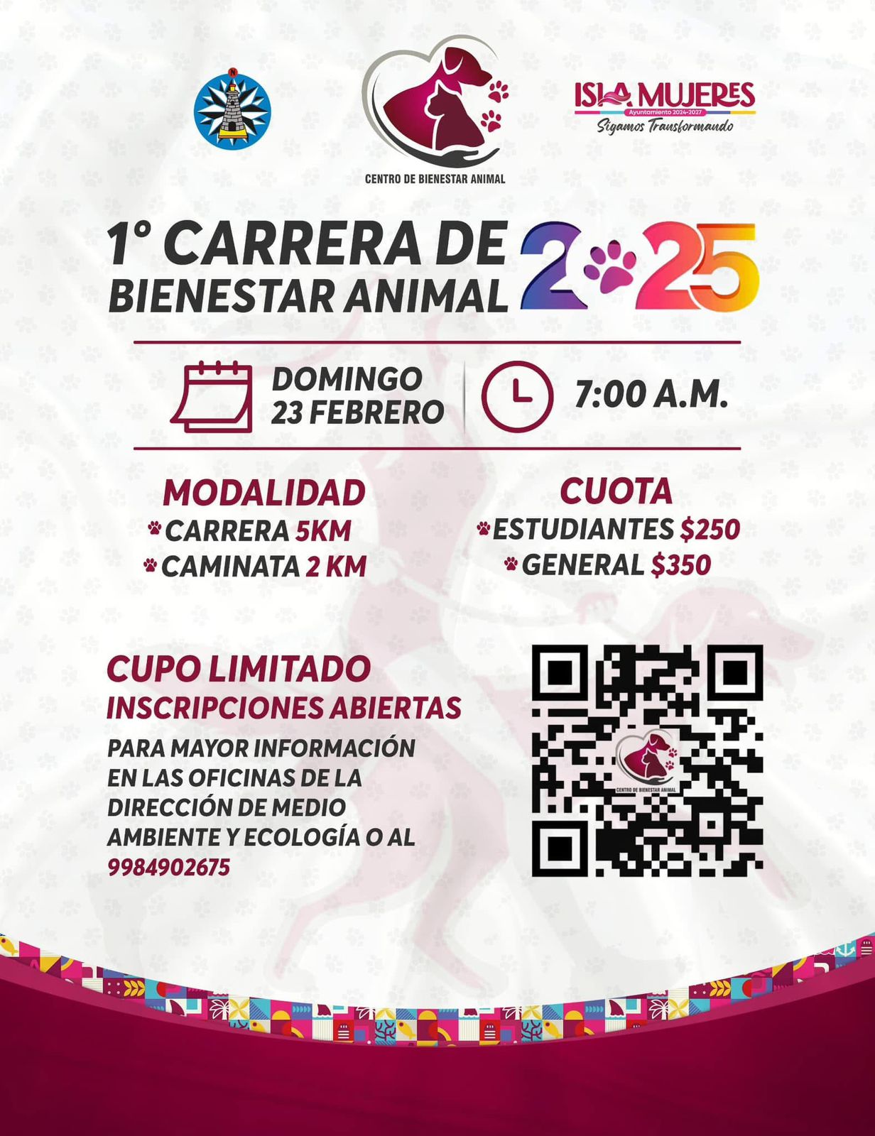 Lo que no es de extrañar, si se considera que la carrera se implementará para que los isleños terminen de cubrir, al menos en parte, el presupuesto de la obra. Ruiz Noh invitó a las familias isleñas a vivir esta bonita experiencia en compañía de sus mascotas, para lo cual refirió que ya están abiertas las inscripciones y que las personas interesadas en participar pueden acceder al siguiente enlace para completar su registro https://page.islamujeres.gob.mx/event/bienestaranimal2025/.
