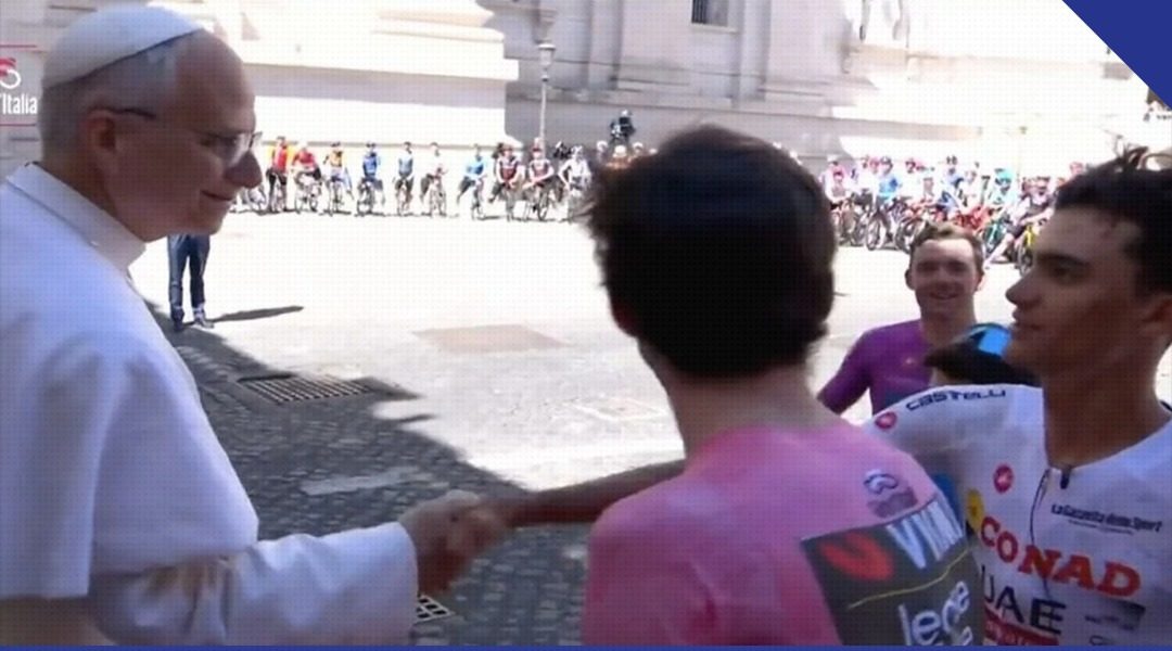 “El ciclismo es tan importante como el deporte en general. Son verdaderos modelos, y espero que, así como han aprendido a cuidar el cuerpo, cuiden también el espíritu”, expresó el pontífice, luego de recibir una Maglia Rosa conmemorativa de los organizadores de la carrera.