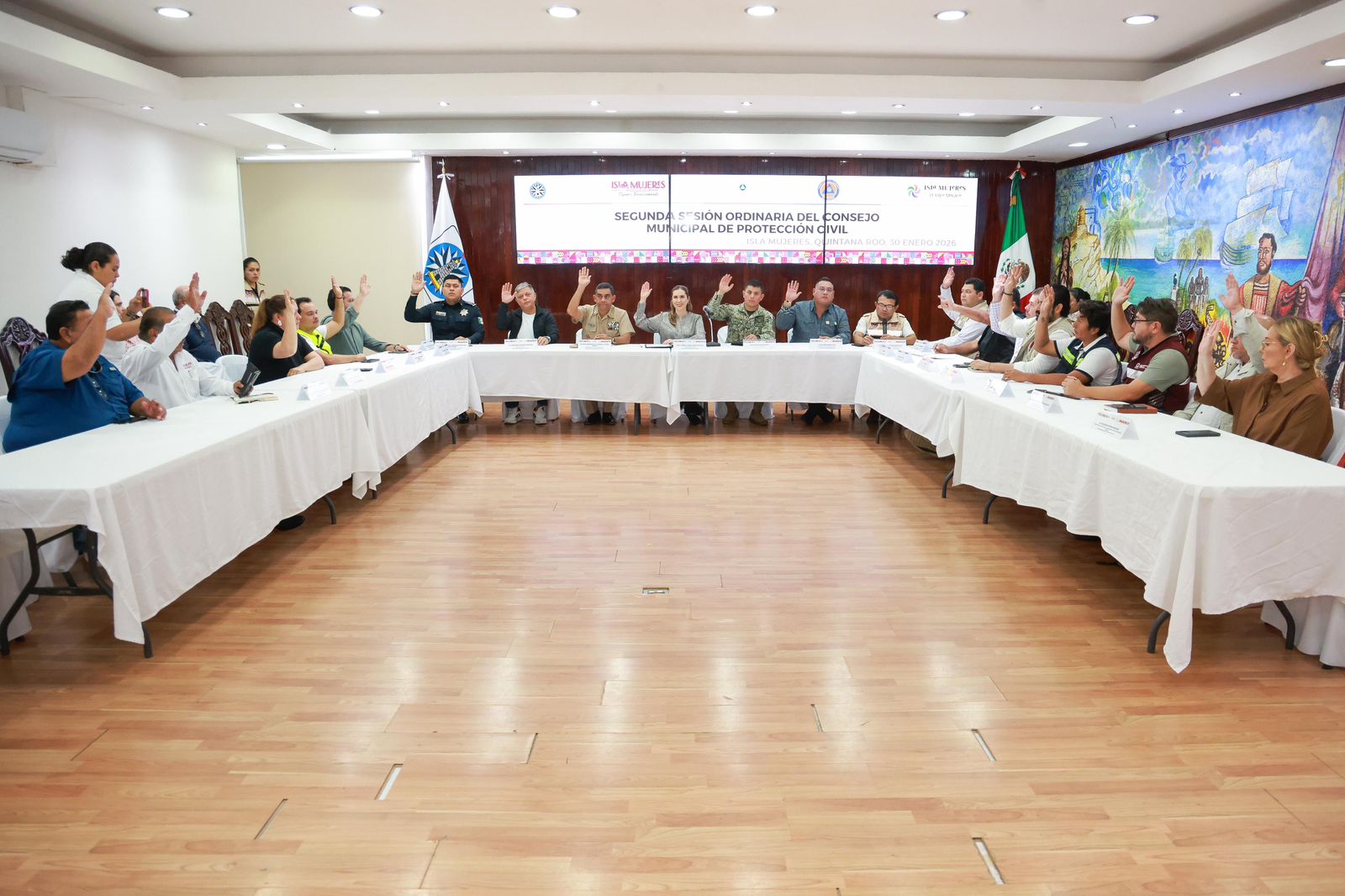 Isla Mujeres, Quintana Roo, 30 de enero de 2026.- Gracias a la visión de gobierno que encabeza la presidenta municipal Atenea Gómez Ricalde, y al compromiso de trabajar por la seguridad de las familias isleñas, el Consejo Municipal de Protección Civil aprobó la actualización del Atlas Municipal de Riesgos de Isla Mujeres, una herramienta que permitirá identificar peligros y vulnerabilidades para una mejor planeación urbana.