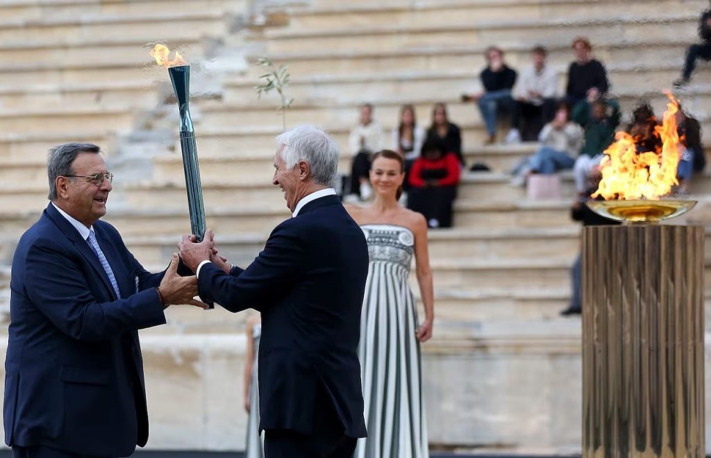 La campeona olímpica italiana de dobles de tenis Jasmine Paolini fue una de las últimas portadoras de la antorcha que llevó la llama al estadio Panathinaikó tras el relevo griego de nueve días y después del encendido el 26 de noviembre en la antigua Olimpia.