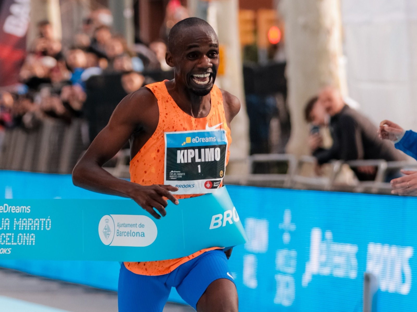 Jacob Kiplimo celebra tras batir el récord mundial.En una jornada marcada por el buen tiempo y la ausencia de viento, el principal protagonista en la edición pasada, Kiplimo voló por las calles de la capital catalana. Desde el inicio, el ugandés impuso un ritmo imparable y en los primeros cinco kilómetros ya había dejado atrás a sus principales rivales, consolidando su dominio de principio a fin.