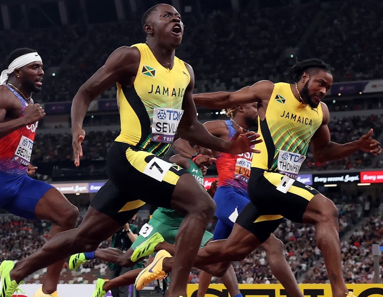 “Estamos reescribiendo la historia”, dijo Seville, el primer hombre jamaicano en ganar los 100 en un Mundial desde Bolt en 2015.