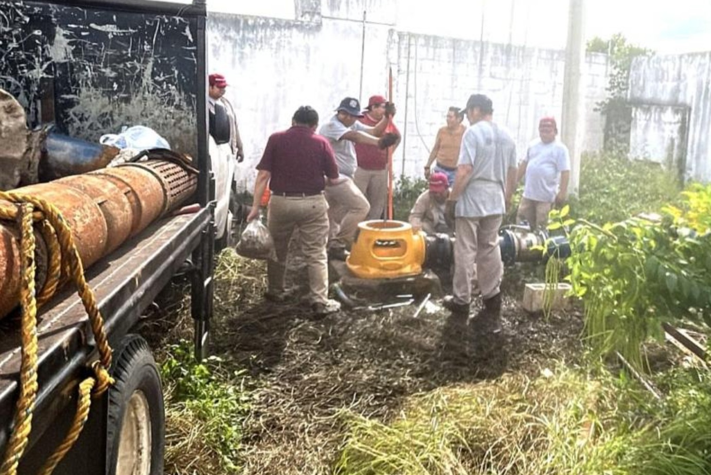 Tras inspeccionar los equipos que abastecen la zona, personal técnico especializado detectó una falla en el equipo de captación III: una flecha de transmisión rota, tubería de columna perforada y un cabezal de descarga dañado, ocasionados por el desgaste natural derivado de la operación continua.