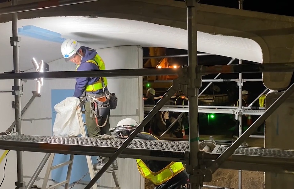 Después de que el último tren partiera a las 11:57 p.m., los trabajadores se pusieron manos a la obra para construir la nueva estación. En menos de seis horas, se montaron las piezas preimpresas, hechas de un mortero especial. Se entregaron en camiones separados, y se utilizó una gran grúa para elevar cada una de ellas hasta el lugar donde los trabajadores las estaban ensamblando, a pocos metros de la antigua estación.