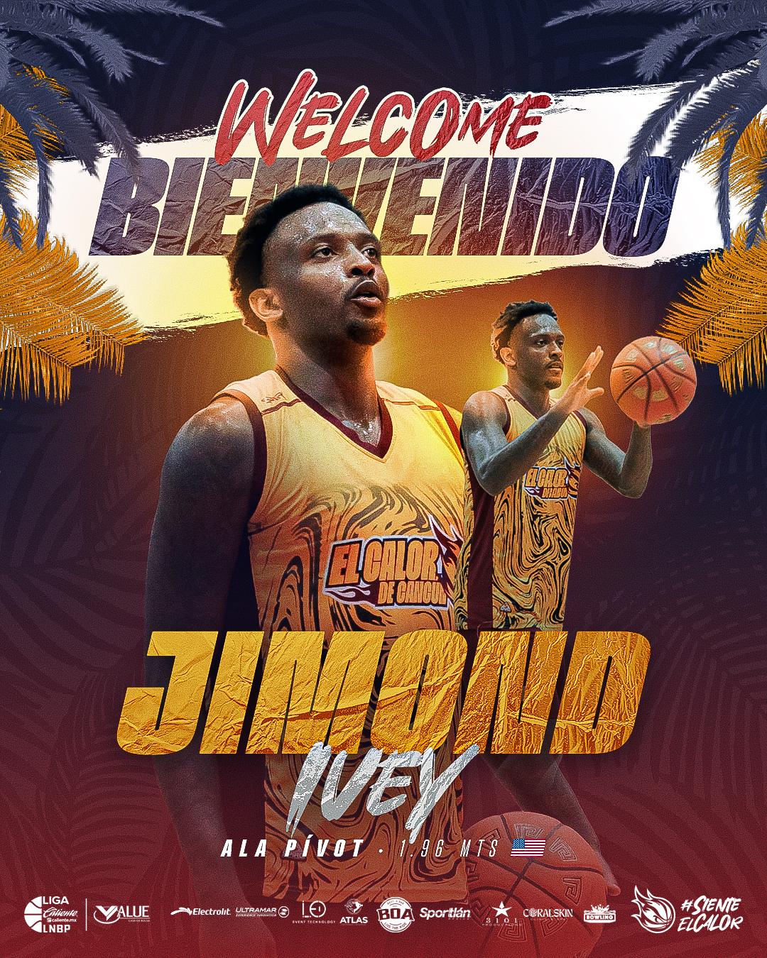 CANCÚN, Q. ROO a 23 de junio.- Luego de haber presentado a cuatro jugadores ya conocidos y que repetirán con El Calor de Cancún, este lunes a través de sus redes sociales, la directiva de la quinteta caribeña, hizo público el arribo a la organización, del jugador estadounidense Jimond Ray Ivey, quien será una de las novedades para que la Temporada 2025 de la Liga Nacional de Baloncesto Profesional Caliente.Mx (LNBP), la cual se encuentra a solo 12 días de dar inicio.