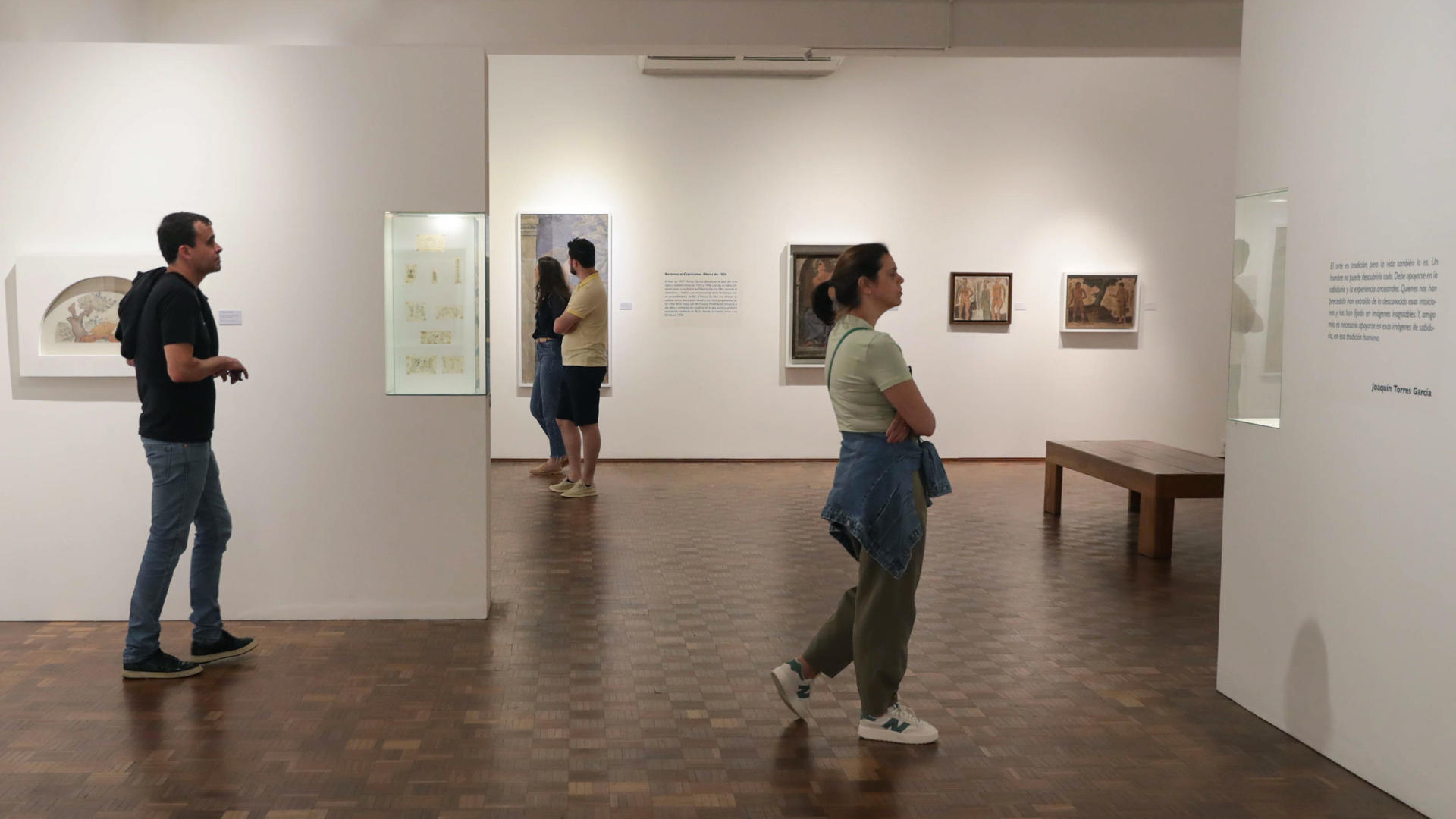 En su libro ‘Estructura’, de 1935, Torres dijo que las dimensiones que conforman al ser humano son la razón, el alma y lo material. Coincidentemente, son tres las etapas de su vida artística que el museo fundado en 1955 por su viuda Manolita Piña transforma en exposición para homenajearlo. “Sobresaliente” en dibujo ya desde su niñez, dio sus primeros pasos como pintor en la Cataluña de fines del siglo XIX y comenzó a trabajar en encargos. A la par, señala su bisnieto, el director del Museo Torres García, Alejandro Díaz, ya investigaba en profundidad el arte grecolatino que volvería a aparecer en obras tardías.