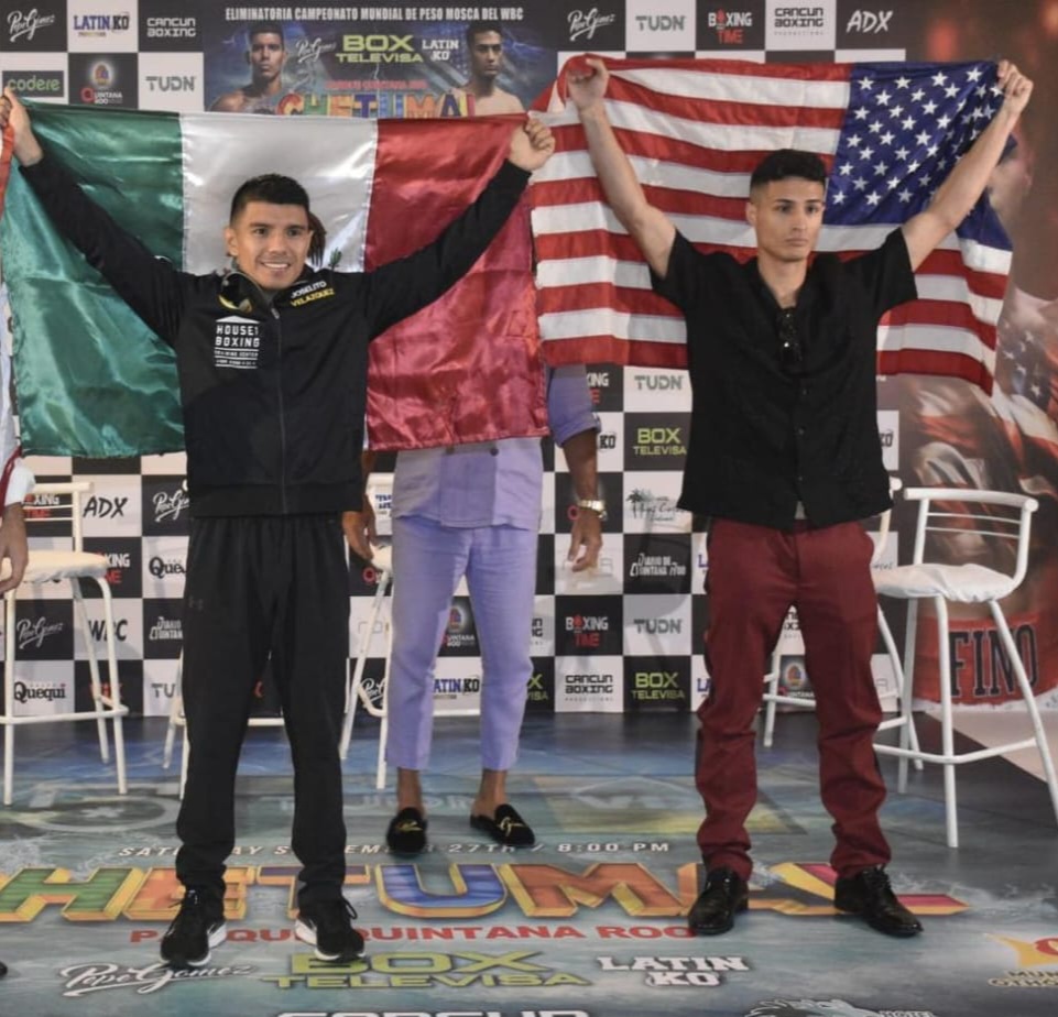 La tarde de este jueves, los aspirantes a una oportunidad por el título de peso Mosca del CMB, se presentaron ante los medios de comunicación, previo a su combate del próximo sábado 27 de septiembre en la Arena “Parque Quintana Roo” de Chetumal, en una cartelera en donde también aparecerán el cancunense Celex Castro y el chetumaleño Adrián “Parrita” Parra