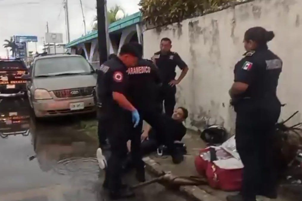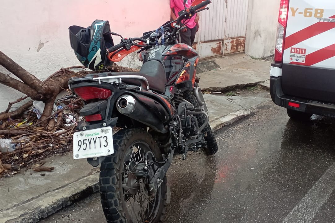 MÉRIDA, YUC. a 5 de agosto – Un motociclista en un unidad de dos ruedas transitaba sobre Circuito Colonias y a la altura de la calle 30 de la colonia Las Palmas en el oriente de Mérida, debido a la lluvia derrapó y se lesionó su extremidad inferior derecha.
