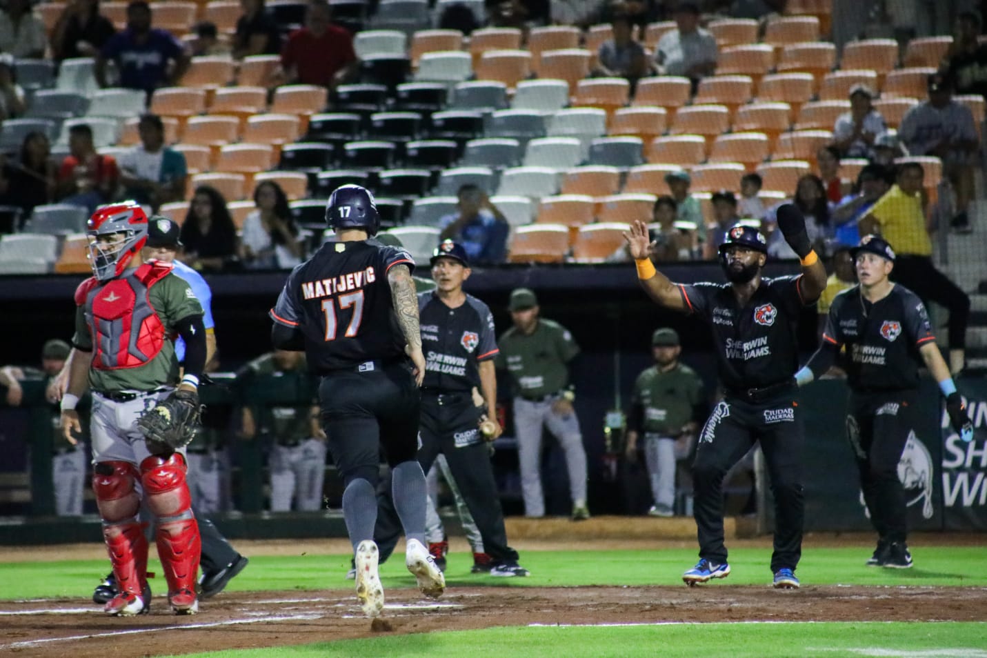 CANCÚN, Q. ROO a 17 de junio.- En una noche de cuatro homeruns, incluyendo dos de Franchy Cordero, los Toros de Tijuana se encaminaron a vencer 16-13 a los Tigres de Quintana Roo, en el arranque de una semana de duelos interzonales en el estadio “Sherwin Williams Beto Ávila” del -Caribe Mexicano-, en un juego que duró 4 horas con 11 minutos y que de convirtió en el de mayor número de carreras entre dos equipos en la historia de los bengalíes en el inmueble cancunense, superando al del 23 de mayo del 2014 donde los Tigres le ganaron 16-11 a los Leones de Yucatán.