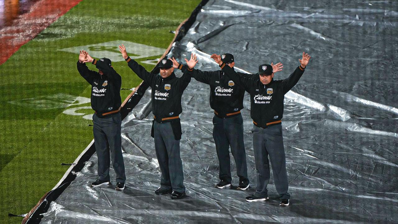 Pasadas las 3 horas y media reglamentarias, en la séptima entrada y media, los umpires suspenden de manera oficial el tercer encuentro de la serie contra Bravos de León debido a las condiciones climatológicas y del terreno de juego.