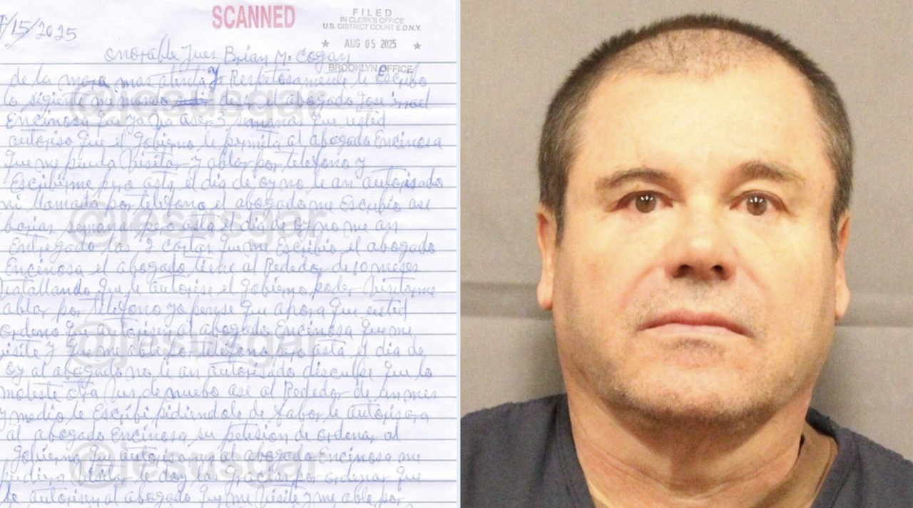 En una carta fechada el 5 de agosto, escrita a mano y dirigida al juez Brian Cogan, Joaquín “El Chapo” Guzmán, preso de por vida en Estados Unidos, se quejó de que no le permiten tener contacto con su abogado, Israel José Encinosa, a pesar de haber solicitado la autorización desde hace cinco semanas.