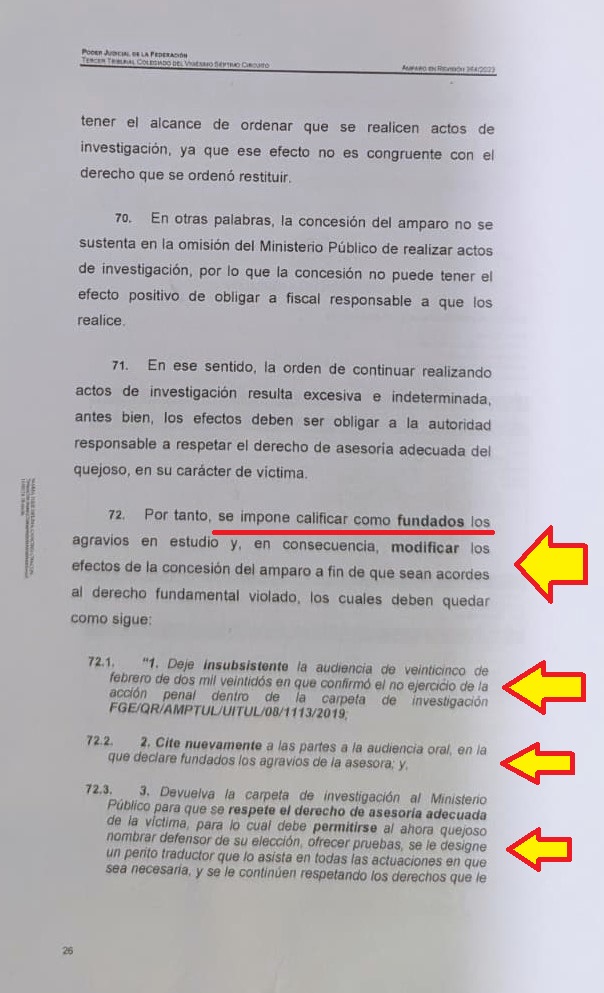 Esta sentencia de amparo (expediente 784/2020) representa un paso crucial, pues abrió la puerta a reabrir la investigación penal contra José M. Rejón y cómplices.