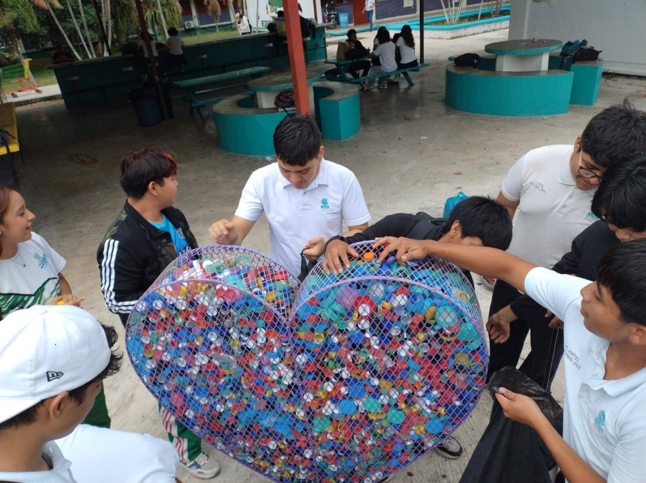Estudiantes de Bachilleres Chetumal Dos donan más de 19 mil tapitas en apoyo a niños con cáncer.