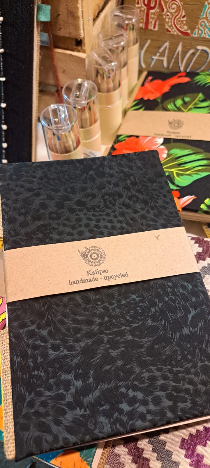 Con ocho años en Tulum, Rodrigo y parajea, encabezan su proyecto, Kalypso, una empresa comprometida con el reciclaje y la creatividad. Esta iniciativa local transforma materiales reciclados en libretas únicas.