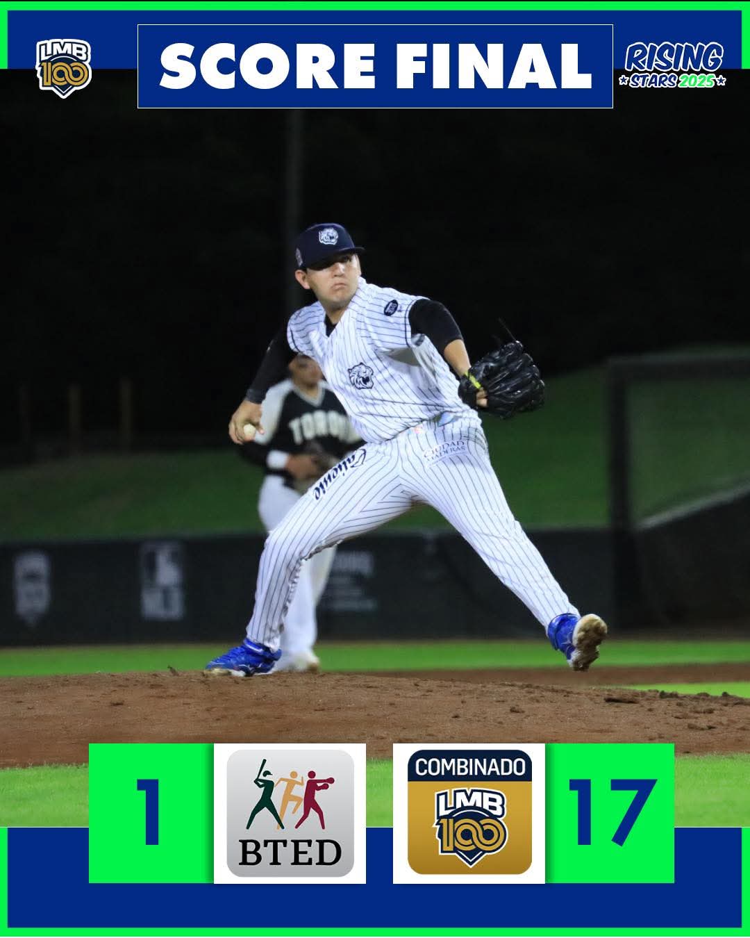 La jornada del jueves del -Risings Stars 2025-, concluyó con el segundo triunfo del certamen para el Combinado LMB, curiosamente los dos ante el BTED que siguen sin ganar, al derrotarlos en esta ocasión 10-1.