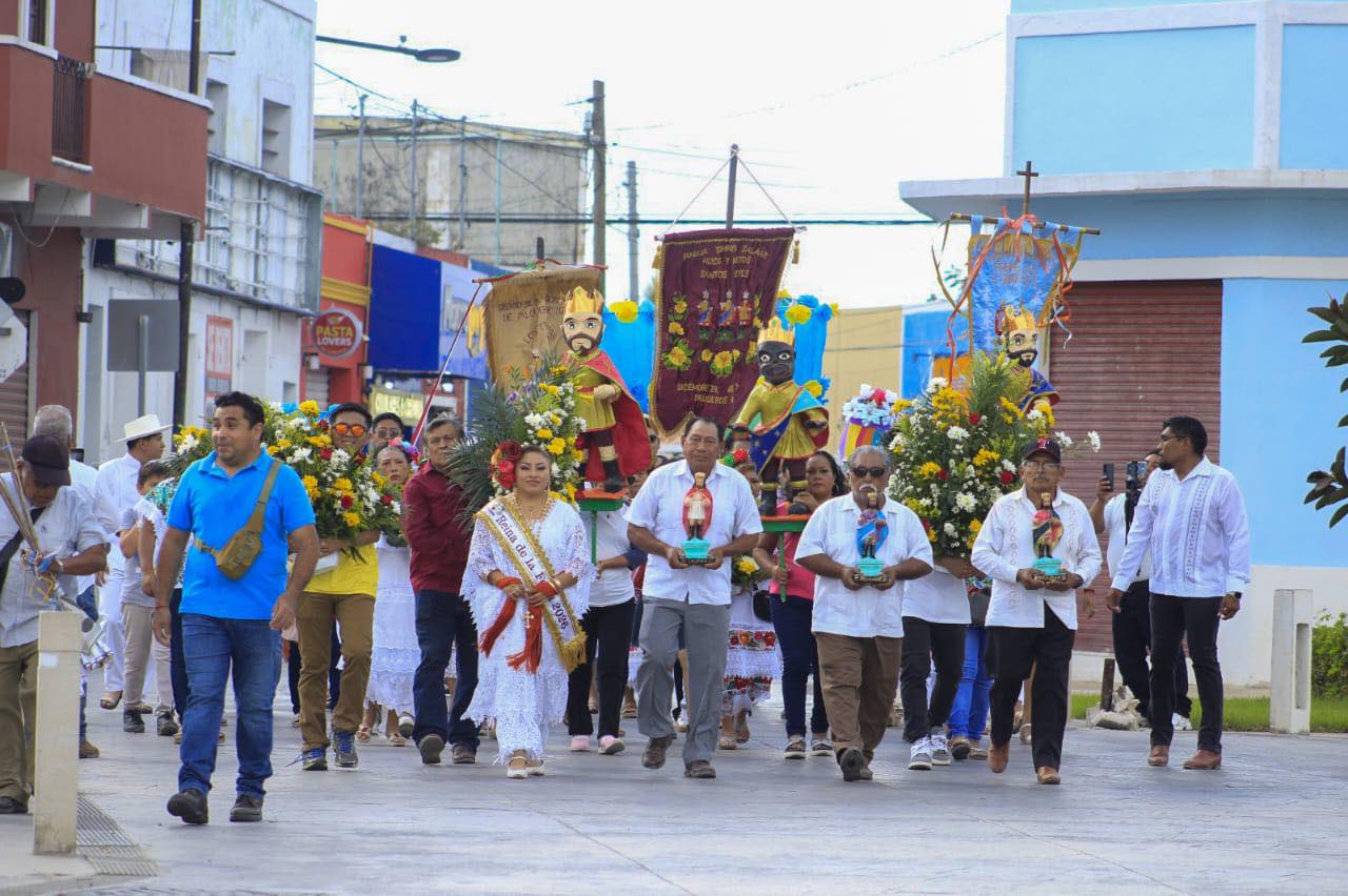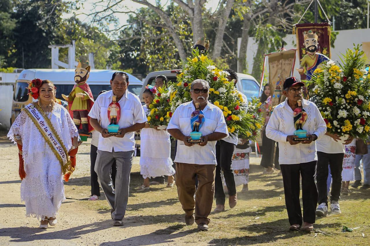 Un día antes, los integrantes de la Unión de Palqueros “Los Tres Reyes” realizaron su tradicional recorrido, partieron de la plaza de toros con ramilletes de flores y estandartes, acompañados por sus familias y por la reina de la feria, Nancy Guadalupe Cutiz Pech, que mañana será coronada oficialmente.