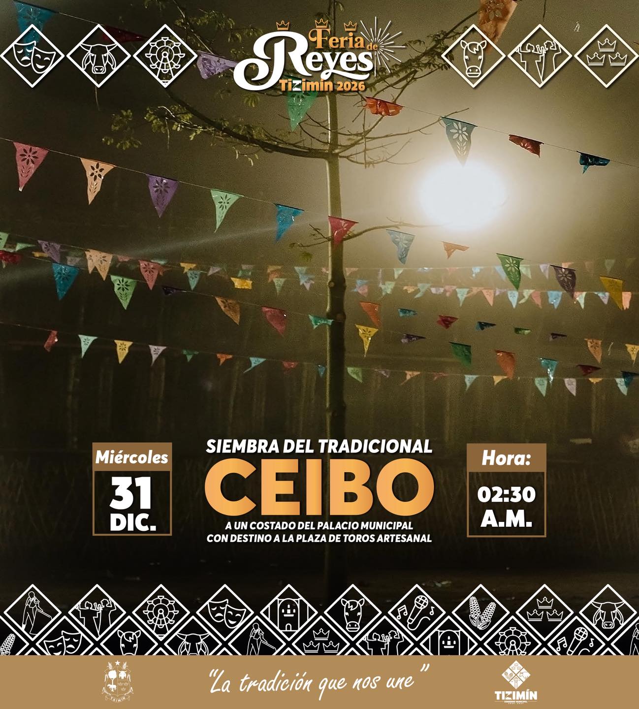 La siembra del ceibo, programada para la madrugada de este miércoles 31 de diciembre a las 02:30 horas, es uno de los rituales más simbólicos de la Feria de Reyes de Tizimín y marca el arranque formal de las actividades tradicionales. Las autoridades municipales han dado cita a la ciudadanía a un costado del Palacio Municipal, desde donde partirá el recorrido con destino a la plaza de toros artesanal, en una ceremonia que reúne a gremios, vaqueros y familias y que simboliza identidad, arraigo y continuidad histórica, reafirmando el vínculo entre la fiesta, el territorio y la memoria colectiva del pueblo tizimileño.