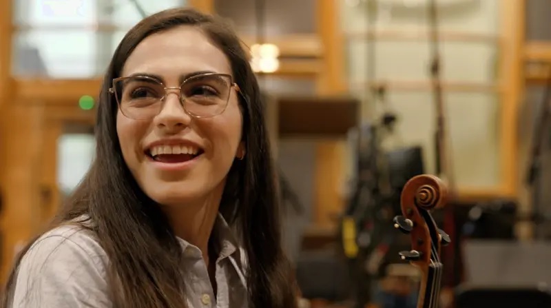 El vuelo duró 12 horas y significó dejar a su querida hija de 10 meses en casa con su madre, pero la violinista rebosa energía al llegar a los ensayos en los icónicos Air Studios del norte de Londres.