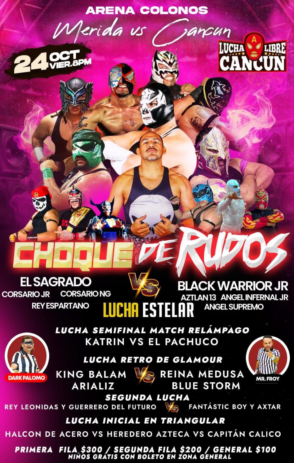 Al tiempo que la esquina yucateca estará ocupada por Aztlan 13, Ángel Infernal Jr. y Ángel Supremo, teniendo como complemento a Black Warrior Jr., que continúa con le legado de Black Warrior (QEPD), y quien apenas el pasado 7 de octubre en la Arena “Coliseo” de Guadalajara, hizo su debut en el Consejo Mundial de Lucha Libre.