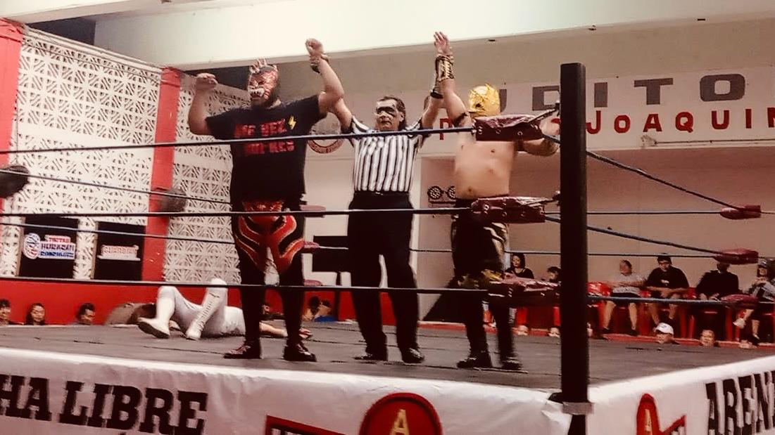 Pero en lo que fue su actuación en la Arena “Colonos” el sábado pasado, Máscara Año 2000 ex integrante de la facción de los -Hermanos Dinamita-, fue recibido de muy buena manera por los asistentes al inmueble de la zona de -La Cuchilla-, tanto así que junto a sus compañeros opacaron la localía de sus rivales en turno, que fueron los siempre temidos -Hijos de la Calle-, integrados por Corsario Jr., Tizoc y Rey Espartano.