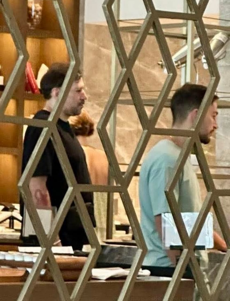 En las imágenes se observa al hijo de AMLO con una gorra negra y lentes oscuros; y a Asaf con una playara y pantalón negros.