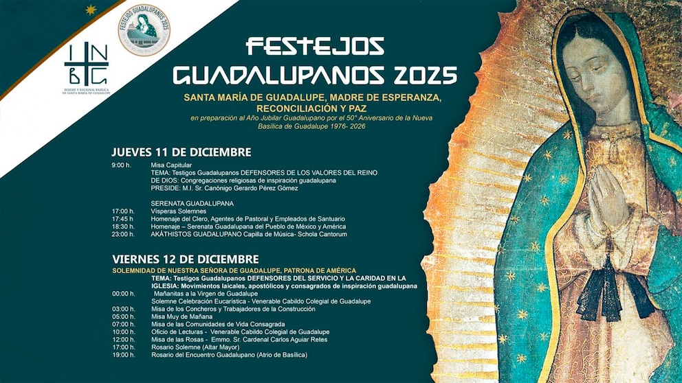 La jornada del 11 de diciembre se inicia con una misa capitular, seguida por una serie de eventos religiosos y culturales, como la serenata guadalupana. A continuación, el calendario completo: