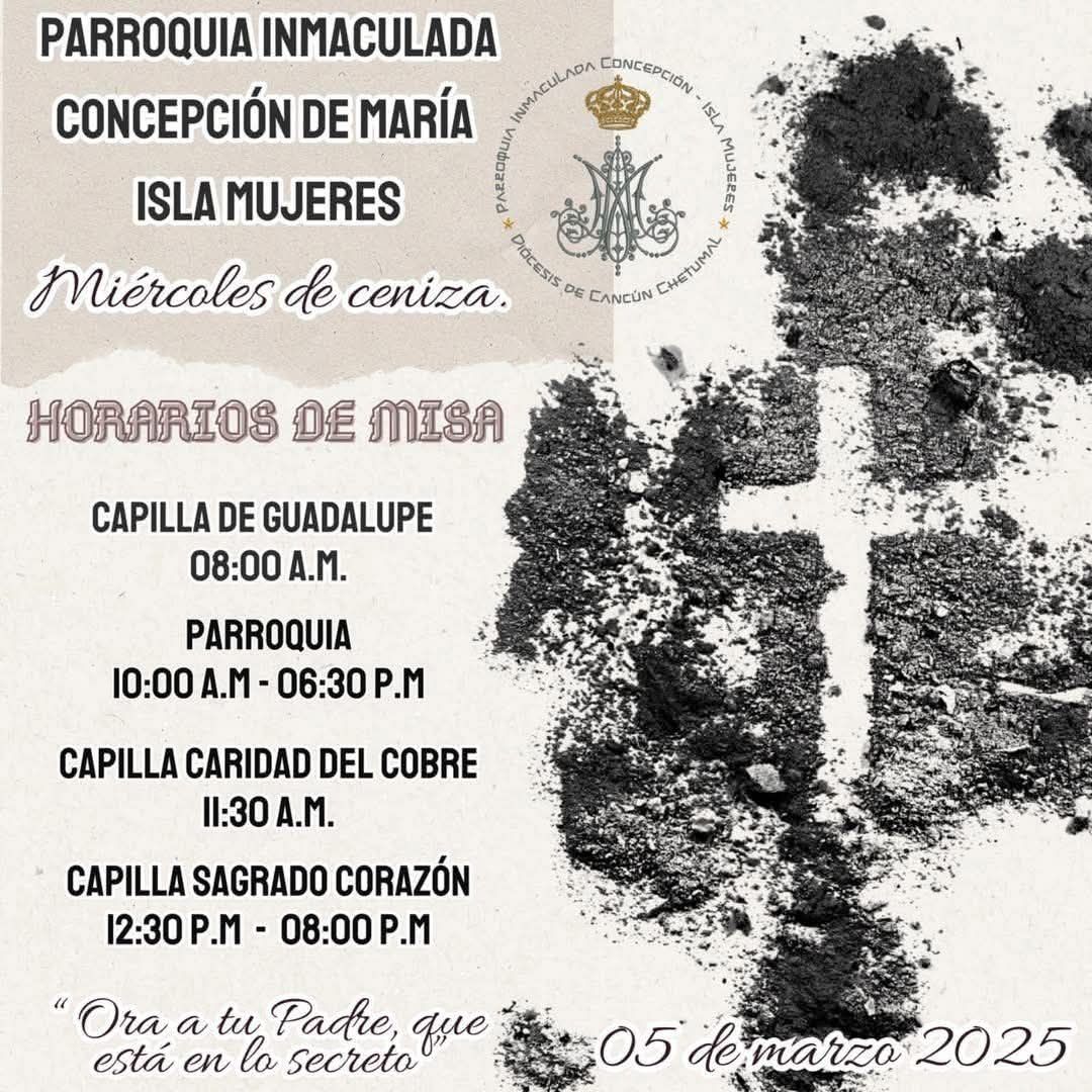ISLA MUJERES, Q.ROO. 05 de marzo-. Con la imposición de la cruz de ceniza durante los oficios religiosos de este 05 de marzo, Miércoles de Ceniza, la comunidad católica de Isla Mujeres se prepara para la Cuaresma, periodo de reflexión, conversión y arrepentimiento.