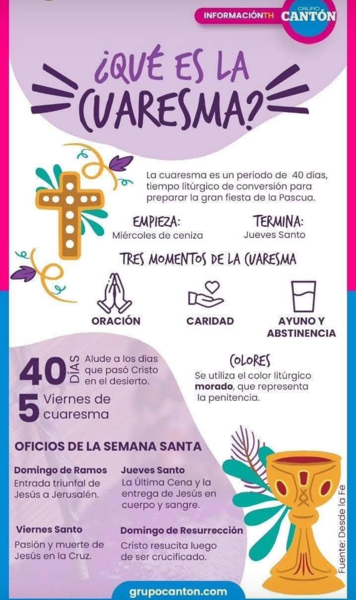 El Miércoles de Ceniza y la imposición de la cruz en la frente abre el camino hacia la Cuaresma, tiempo que invita a una revisión de nuestras vidas, actitudes y comportamientos, reflexión sobre lo que estamos haciendo mal y oportunidad de iniciar un firme proceso de conversión y purificación, espiritual con la oración y física, con el ayuno y la abstinencia.