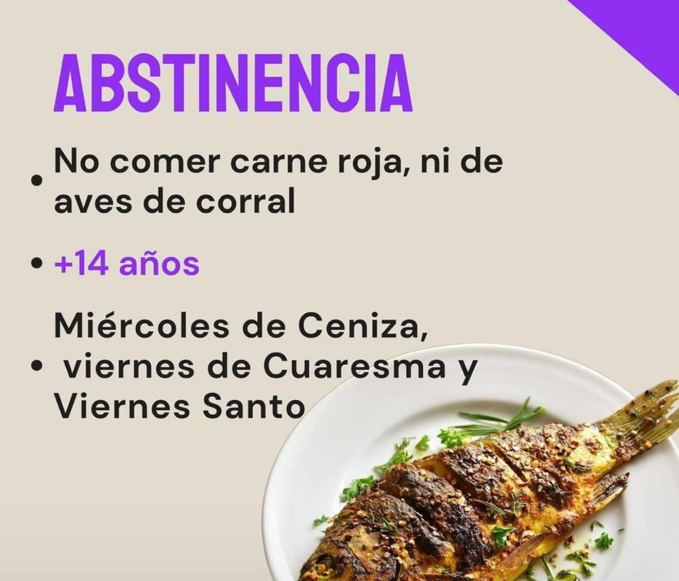 La abstinencia de comer carne es obligada desde los 14 años. Todos los viernes de Cuaresma también lo son de abstinencia obligatoria