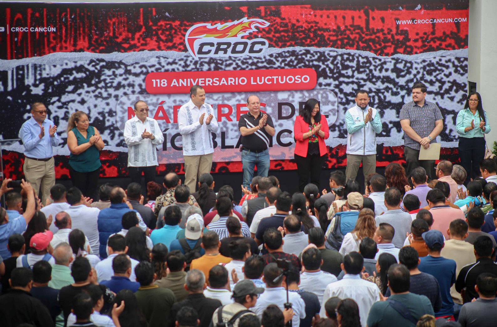 Fue en la explanada del sindicato de la CROC Cancún, en donde se llevó a cabo el 118 aniversario luctuoso de los Mártires del Rio Blanco, evento que conmemora la defensa de los derechos elementales de la clase obrera y que en esta ocasión en su lucha defensora sumó a varios sindicatos.