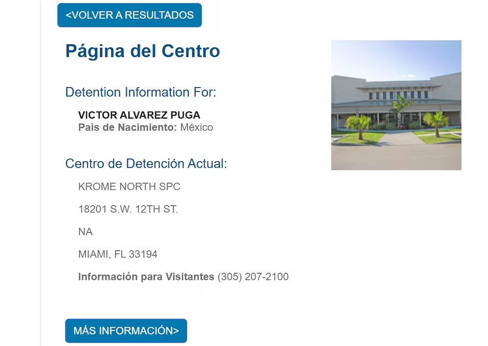 • De acuerdo con el registro de detenciones del Servicio de Control de Migración y Aduanas (ICE), Víctor Álvarez Puga está bajo custodia en un centro en Miami.