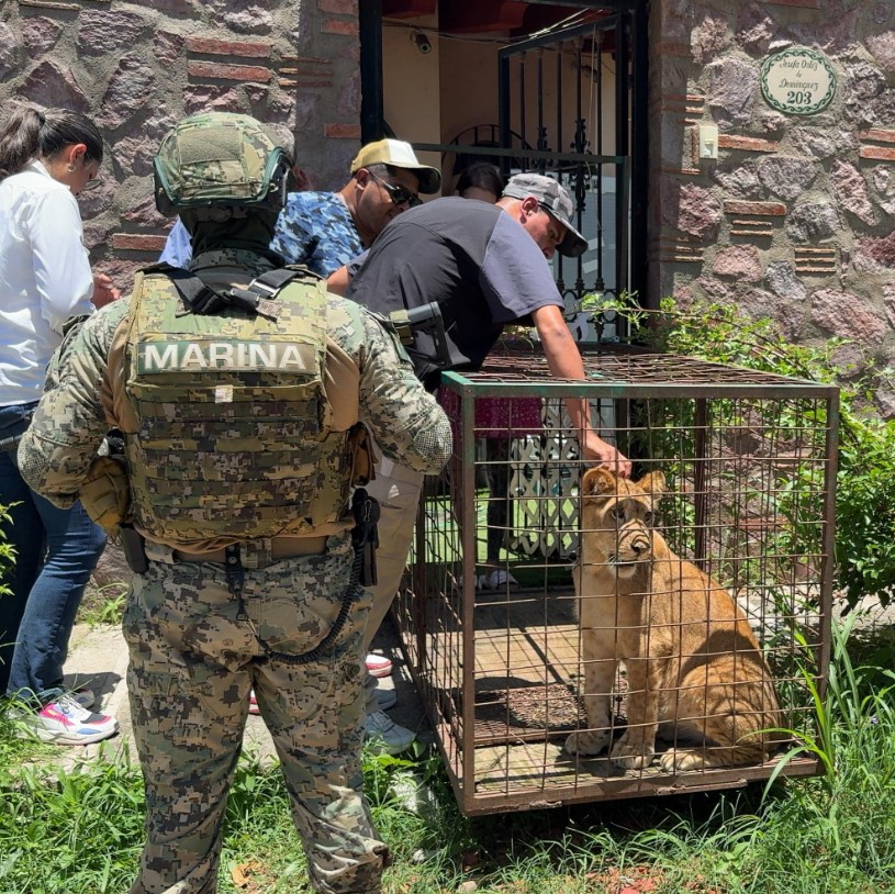 Esta acción se efectuó cuando personal naval brindó seguridad perimetral en citado domicilio ubicado en la colonia Independencia, donde se encontraba dicho felino, el cual fue puesto a disposición de las autoridades competentes para los efectos legales correspondientes.