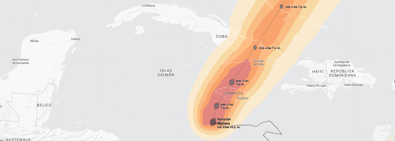 Es un monstruo que avanza con vientos máximos sostenidos de 282 kilómetros por hora, de acuerdo con el Centro Nacional de Huracanes de Estados Unidos, que advirtió este 27 de octubre que el huracán Melissa ha alcanzado categoría 5, el máximo grado en la escala Saffir-Simpson. Su parada más próxima es Jamaica, donde las plegarias acompañan a las previsiones.