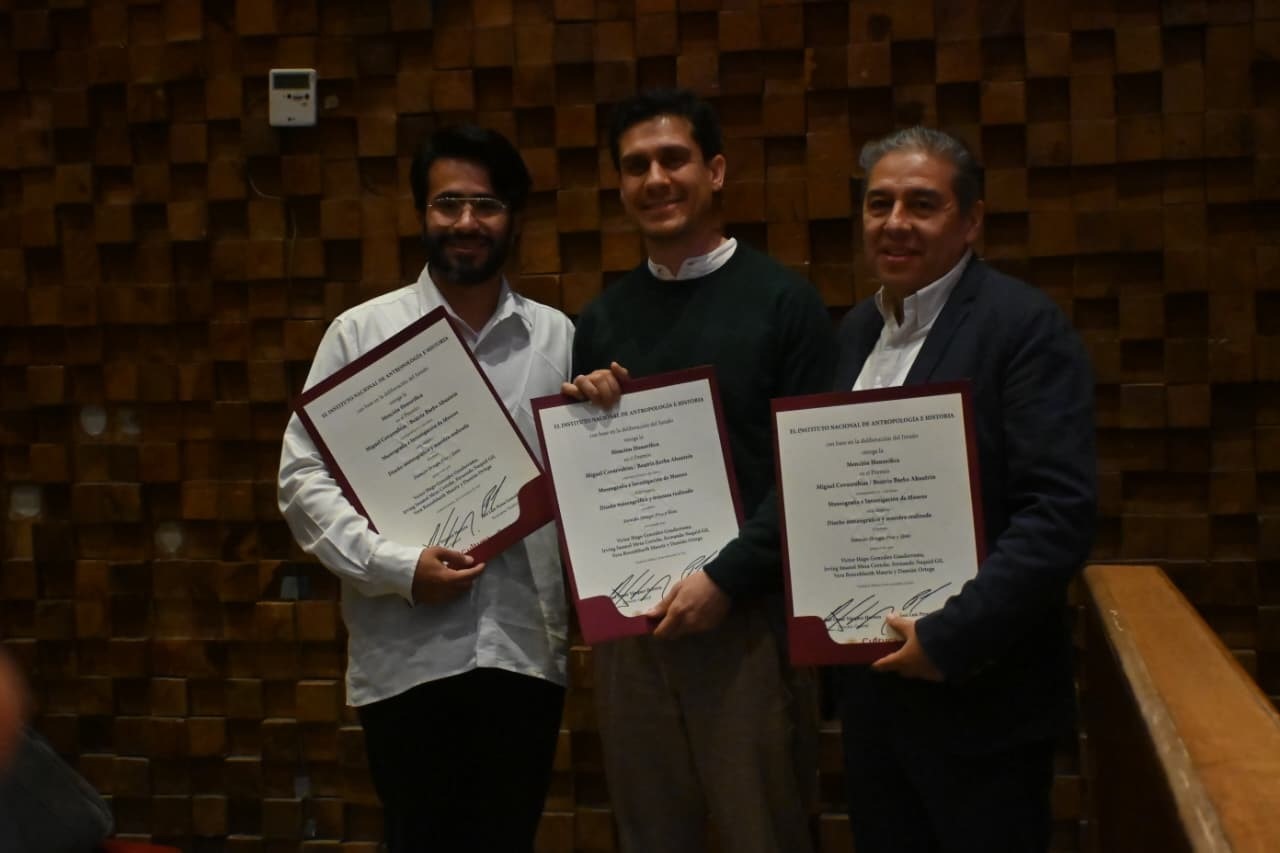 Recibieron el reconocimiento Víctor Hugo González Guadarrama, Irving Imanol Meza Coriche y Fernando Naquid Gil, integrantes del equipo de diseño museográfico de la exposición, quienes colaboraron también con el artista Damián Ortega y con Vera Rosenblueth Mauriz.