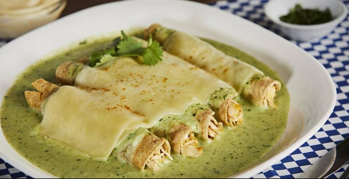 Así como las enchiladas de pollo en salsa verde con crema y queso granitado, las emblemáticas Enchiladas Suizas.