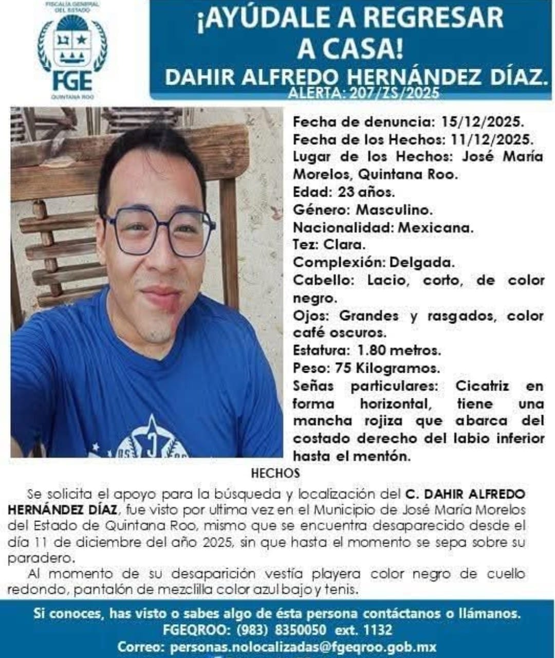 Este caso se suma a una estadística alarmante: más de 200 hombres y casi 70 mujeres desaparecidos en la zona sur del estado, además de recientes reportes de otros dos jóvenes no localizados.