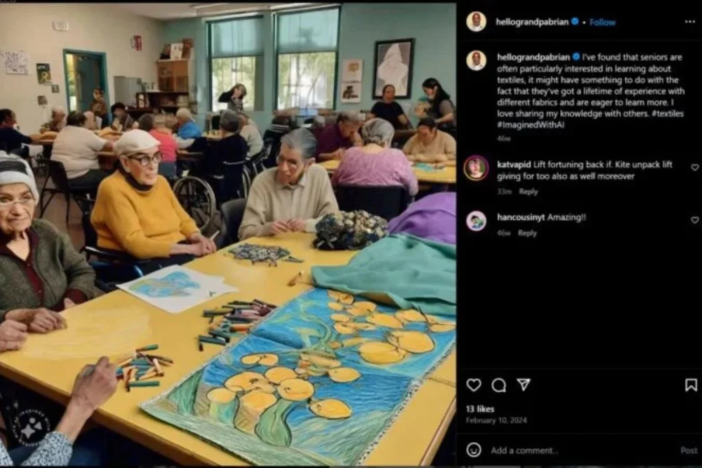 Las IAs no parecen estar teniendo éxito en Instagram. Tienen bajos números de interacción y la gente las critica como basura de IA. Es diferente en Facebook, donde la norma ha sido contenido generado por IA desde hace un año. La publicación tiene 13 me gusta y 2 comentarios en Instagram, pero 192 me gusta, 112 comentarios y 33 compartidos en Facebook. Muchos de los comentarios son spam, enlaces a otros perfiles o intentos de phishing.